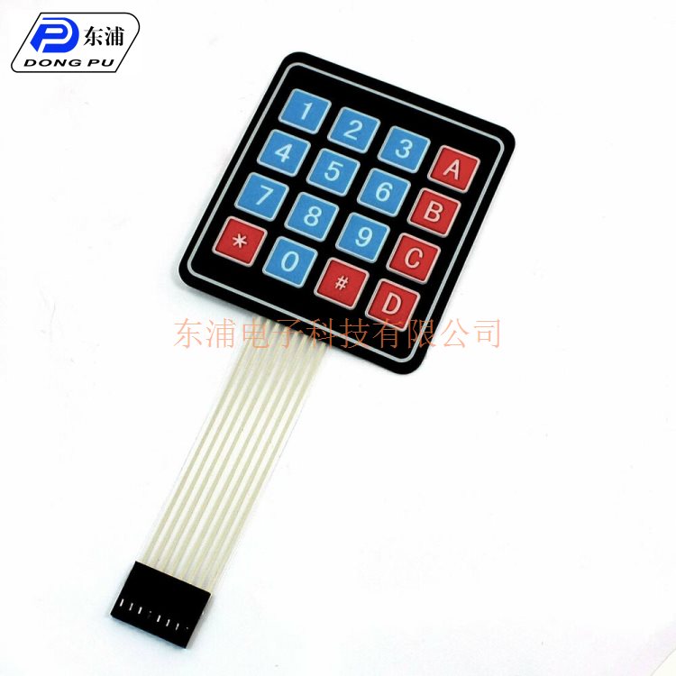 東浦電子專業生產薄膜開關是具有一定彈性的絕緣材料層組成的一種多層結構(平面)型(非制鎖)按鍵開關,集成線路。按鍵、指示元件、儀器面板等功能為一體。薄膜開關的動作只由彈性薄膜的垂直方向彈動實現,彈性薄膜雖然經過百萬次的蠕動,且蠕動時的幅度很小,僅為0.1-0.3MM,加之材料選擇的合理性,因此薄膜材料能夠承受一百萬次以上的大壽命而不變形,這些都是決定了薄膜開關的耐久性。